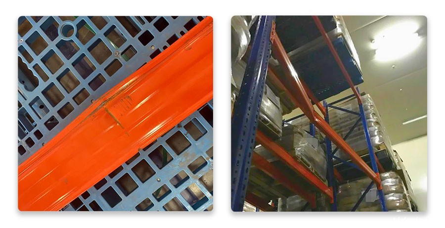 货架发生整体性连续性倒塌的概率不是很高,实际中经常发生的、很多客户都遇到过的是横梁坍塌导致的事故,在我们的实际检测项目中也得到了印证。针对横梁坍塌的可能原因,我们做一下分析。