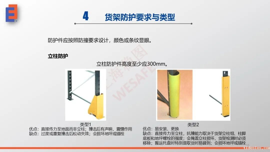 对于货架立柱防护与端部防护,并不是随便做个护脚护套就可以装上防撞了,这些防护的设计与使用,有明确、详细的标准可依,比如FEM 10.2.16(2017) 《The Design and Use of Rack Protection for APR Upright and Frame Protection》。不符合标准的设计与使用,比不设置防护还要危险,不如不用。