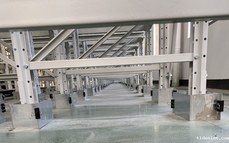 清歆:平库的,一般没有调节螺杆,直接立柱底脚着地。一般都是柱底板一边着地,一般可能有缝,用镀锌铁板垫反而方便。用水泥,填一个缝恐怕还不好弄。当然这种做法,整体水平恐怕还是有点斜的!不是相对平。比立库差远了。